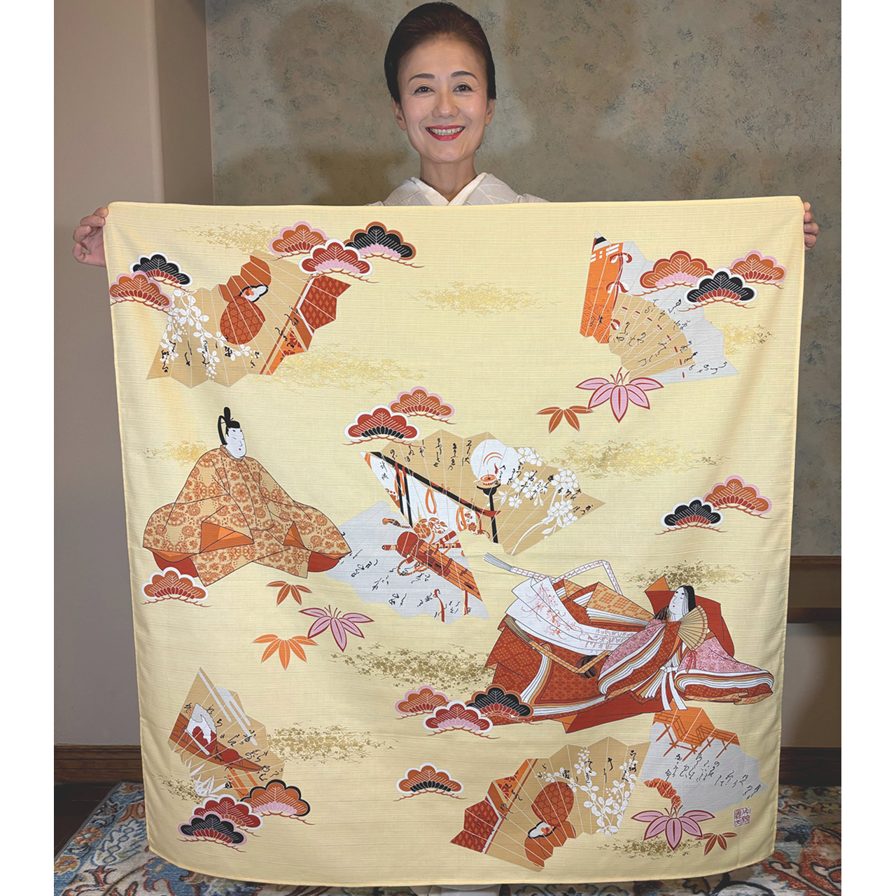 成願義夫オリジナル風呂敷、『王朝雅シリーズ』 落款入り。