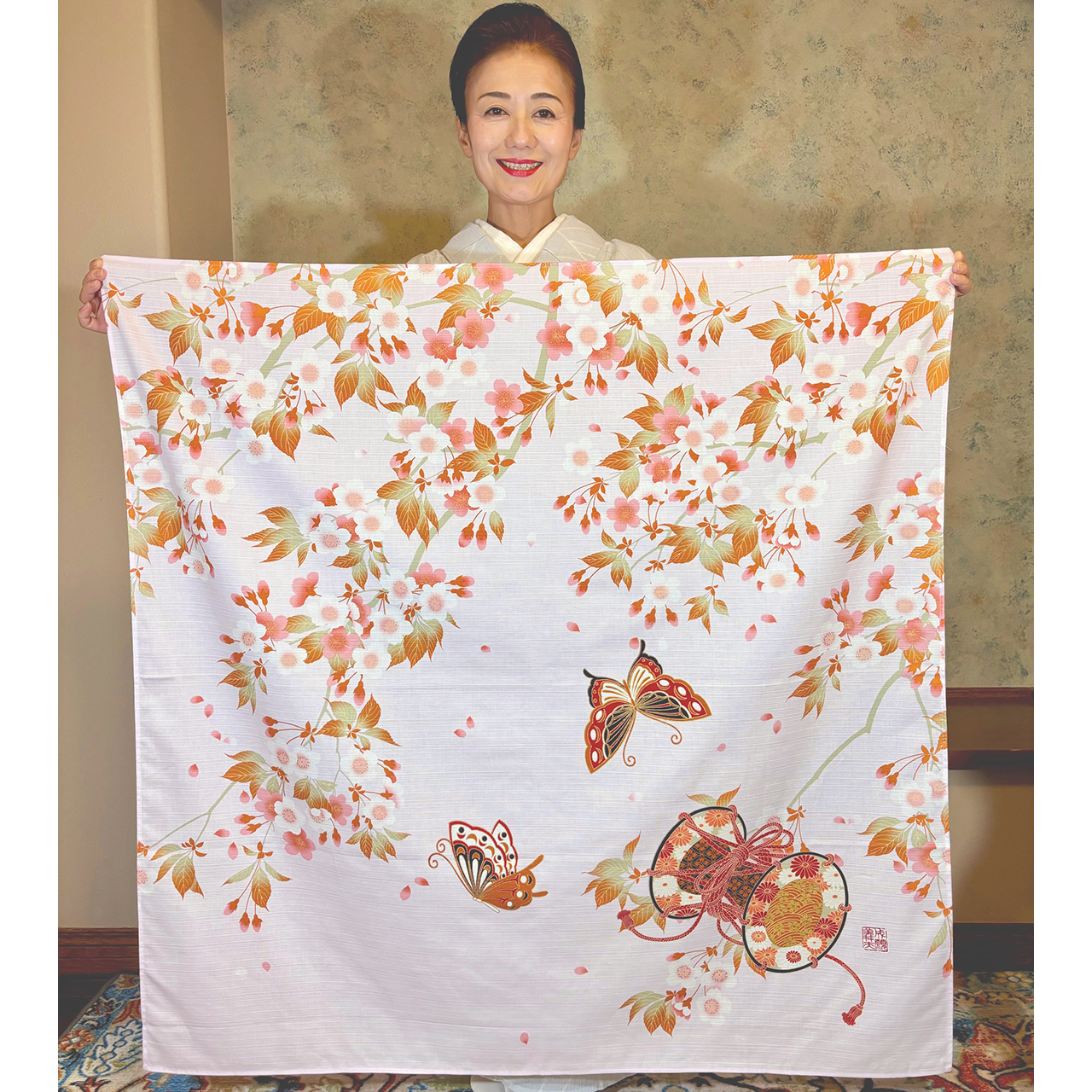 成願義夫オリジナル風呂敷、『王朝雅シリーズ』 落款入り。
